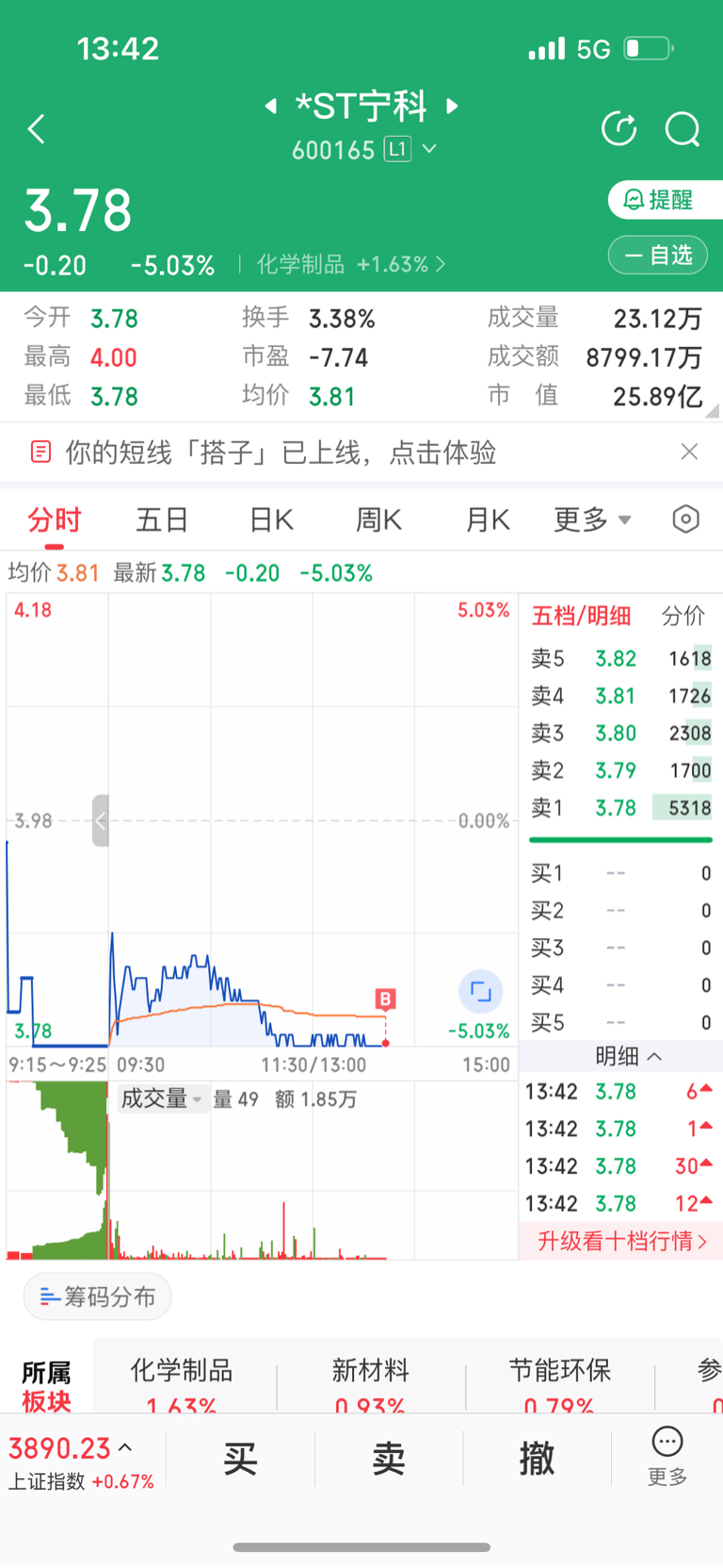 $*ST宁科(SH600165)$ 感谢主力,后面希望还有机会加仓。