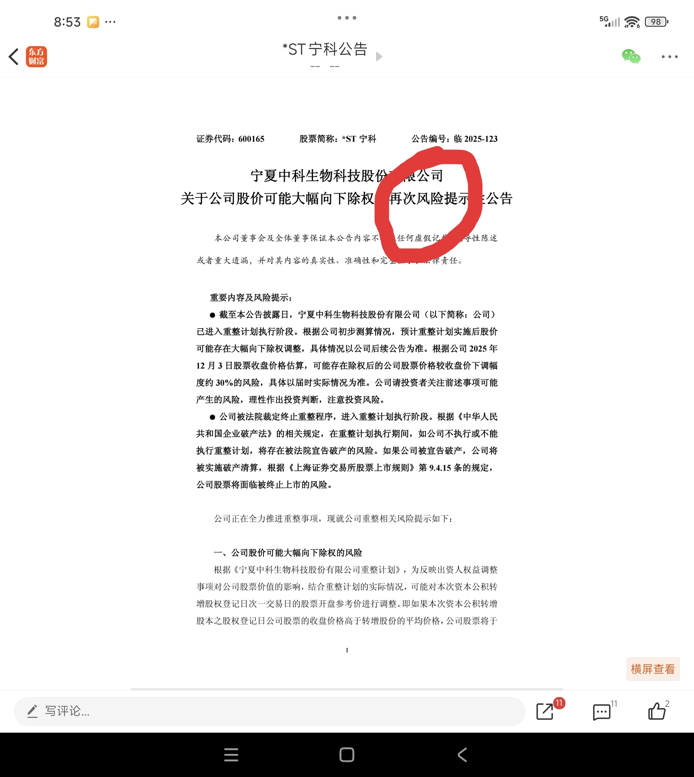 $*ST宁科(SH600165)$ 再次提示除权风险!意味着那一天快到了!勿谓言之不预矣!现在从从容容游刃有余,别到时哽咽不己!股市不相信眼泪!