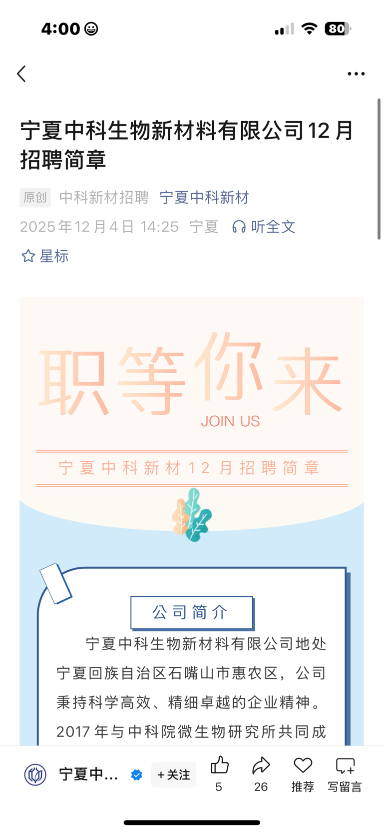 $*ST宁科(SH600165)$ 又招聘20人,技改差不多了吗