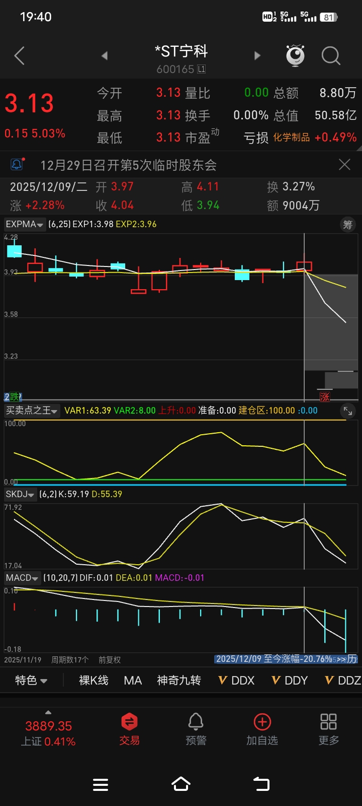 $*ST宁科(SH600165)$ 在通达信昨天从4.04跌到2.86,亏了26%,而这边却是涨停板,有谁知道通某这拉j软件是怎么回事,都是前复权啊