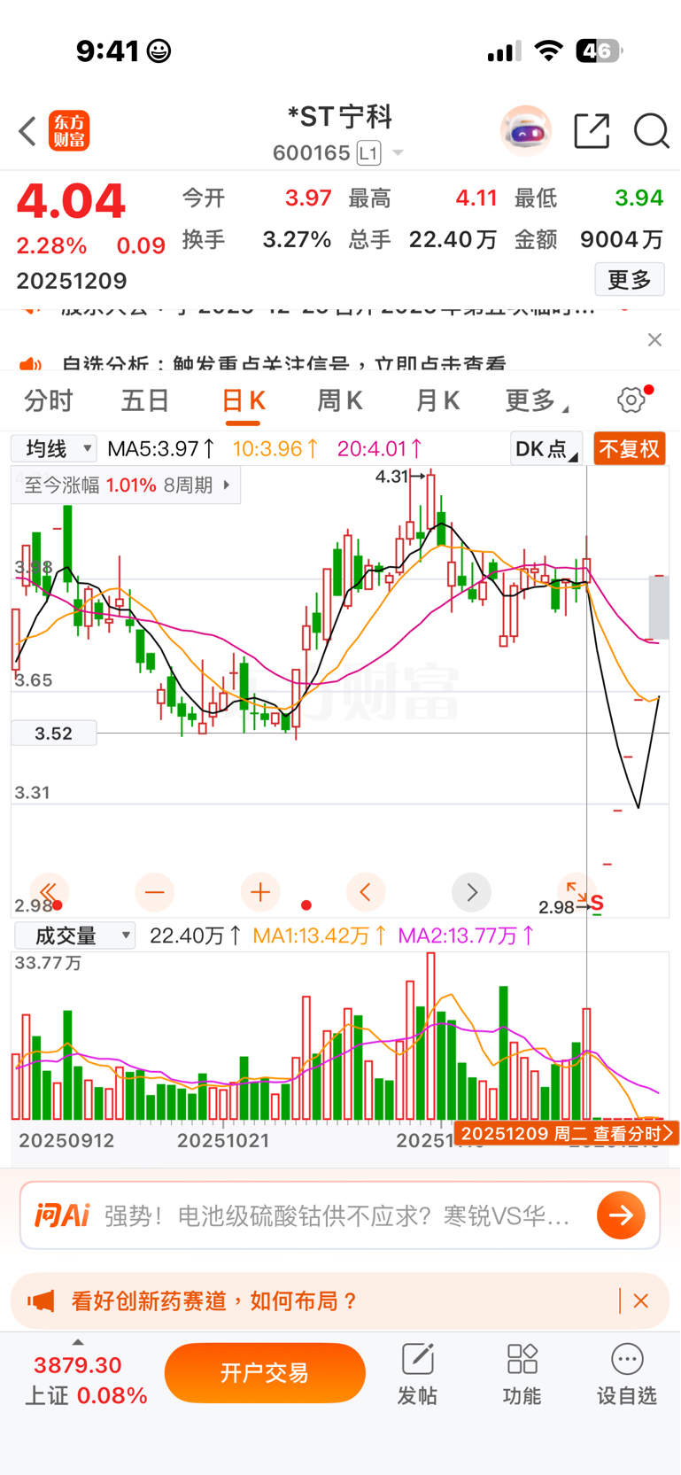 $*ST宁科(SH600165)$ 还没回到除权价格4.04,没回本。宁科是今年几个重整股中重整后市值较低的,六十多亿,炼石东易都上百亿,而且是靠自身就能实现盈利的