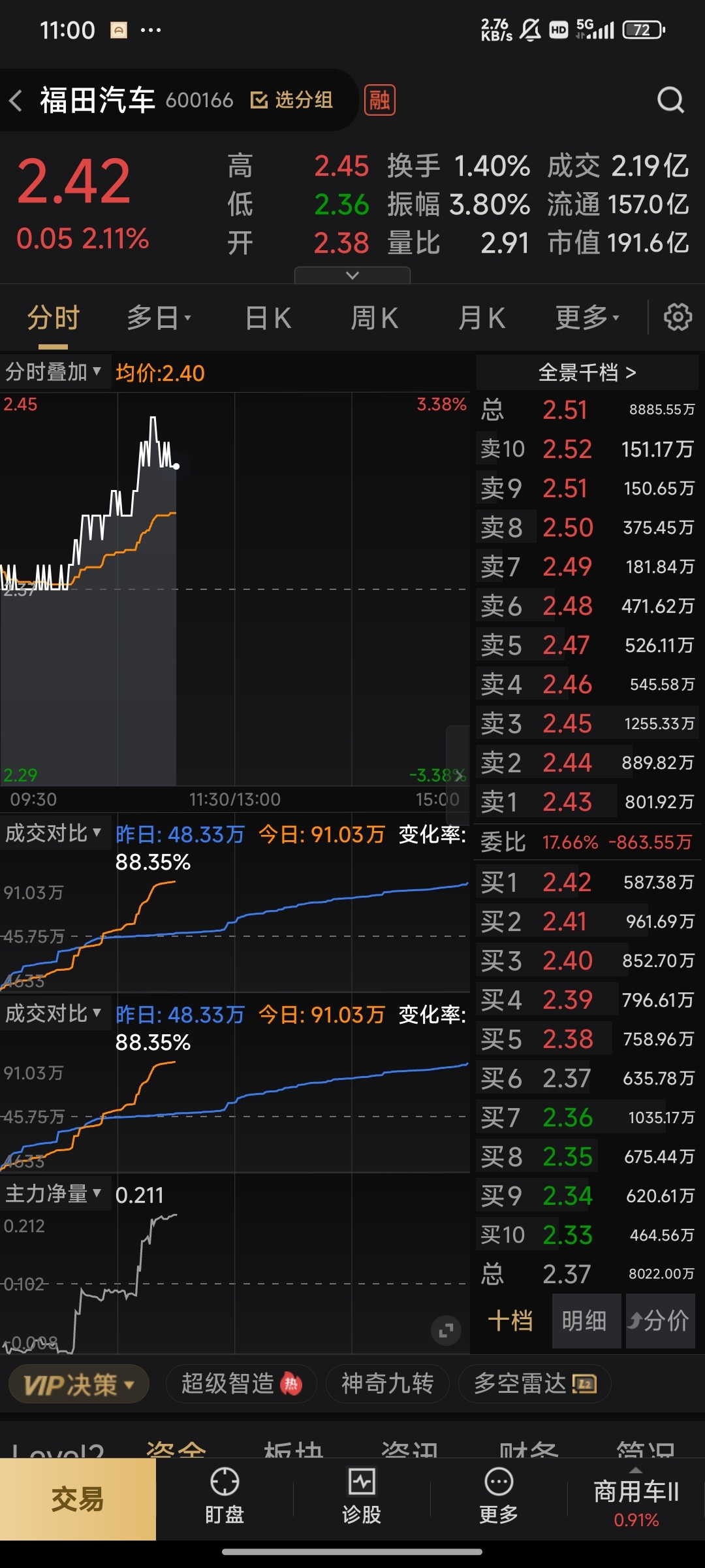 $福田汽车(SH600166)$ 8800万的卖单,不涨停说不过去啊