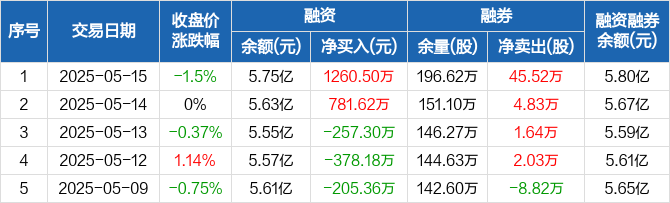福田汽车:融资净买入1260.5万元,融资余额5.75亿元(05-15)