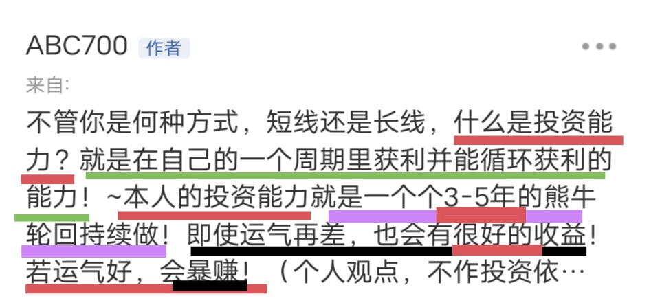 ABC700,什么是投资能力?你在此已胡吹了8.5年了,当年净资产价2.85元起吹,时至今日有2个你口中的3~5年的熊牛轮回了吧!2.85→2.74元,这还不算时间成本,你这是运气好还是差呢?暴赚了吗?很好的收益了吗?