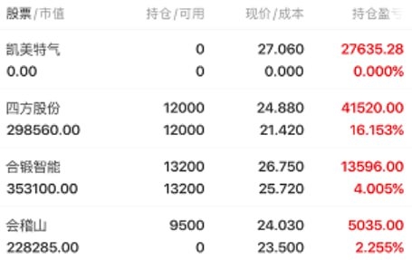 今日备选个股:凯美特气、 合锻智能、亚世光电、安泰科技 、会稽山、至纯科技、集合竞价时间是衡量个股和抉择的重点方向之一,今天凯美特气量能持续萎缩承接力度不强选择获利出局,选择介入会稽山;所以选择好的赛道才能在市场游刃有余;持有和备选个股会结合市场各方面因素以及盘中情绪变化做选择;把握节后的市场动向,需要更敏锐的洞察力,板块轮动过快,对个股冲击很大,很多个股出现调整,市场需要调整个股也不例外,所提标的每天都在实时观察,最近的操作相信很多一路支持的老铁有目共睹;如有质疑可持续验证也可爬楼观看,在此祝所有老铁投资顺利!股市长虹!!!#社区牛人计划#