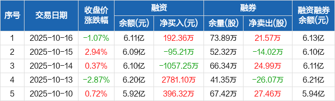 福田汽车:融资净买入192.36万元,融资余额6.11亿元(10-16)