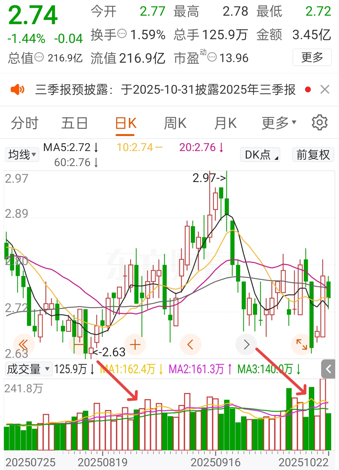 10月16日成交1.1亿股、17日成交2.1亿股、20日成交1.1亿股、21日成交2.4亿股、22日成交1.2亿股!这5天成交量持续反复倍增倍缩,这明显是主力庄家在大幅度活动!散户每天买入量不可能隔一天就相差一倍吧?