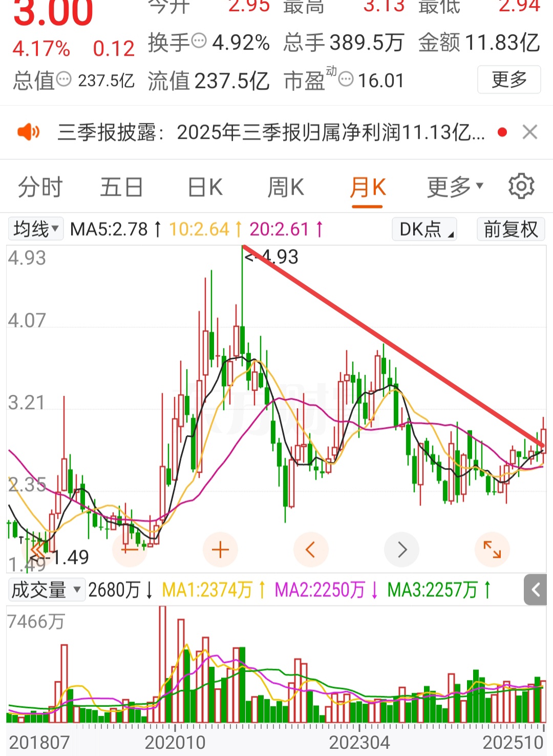 月线级别突破几年大三角意味着运行轨迹发生改变了!突破后的走势总比前几年大三角区间要好!