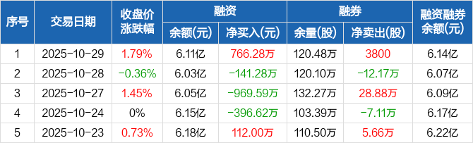 福田汽车:融资净买入766.28万元,融资余额6.11亿元(10-29)