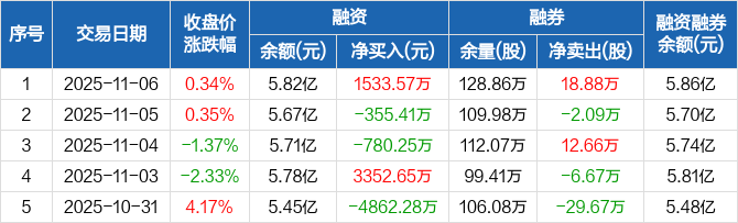 福田汽车:融资净买入1533.57万元,融资余额5.82亿元(11-06)