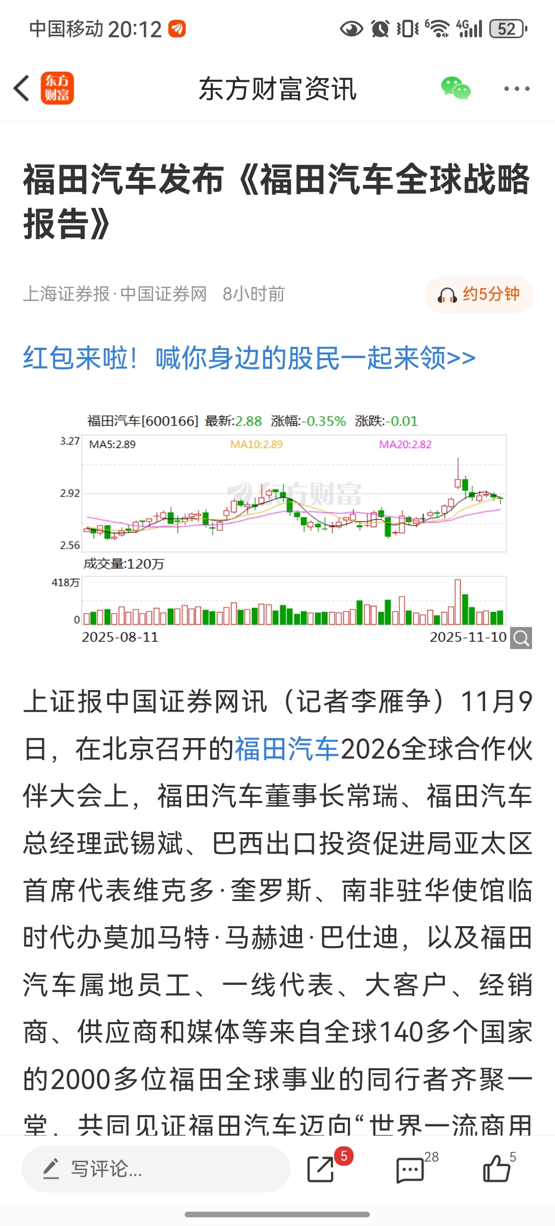 福田汽车发布全球战略报告,国际友人一看福田汽车原来这么高大上,然后一看市值才两百