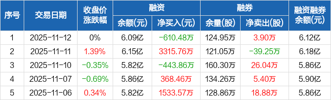 福田汽车:融资净偿还610.48万元,融资余额6.09亿元(11-12)