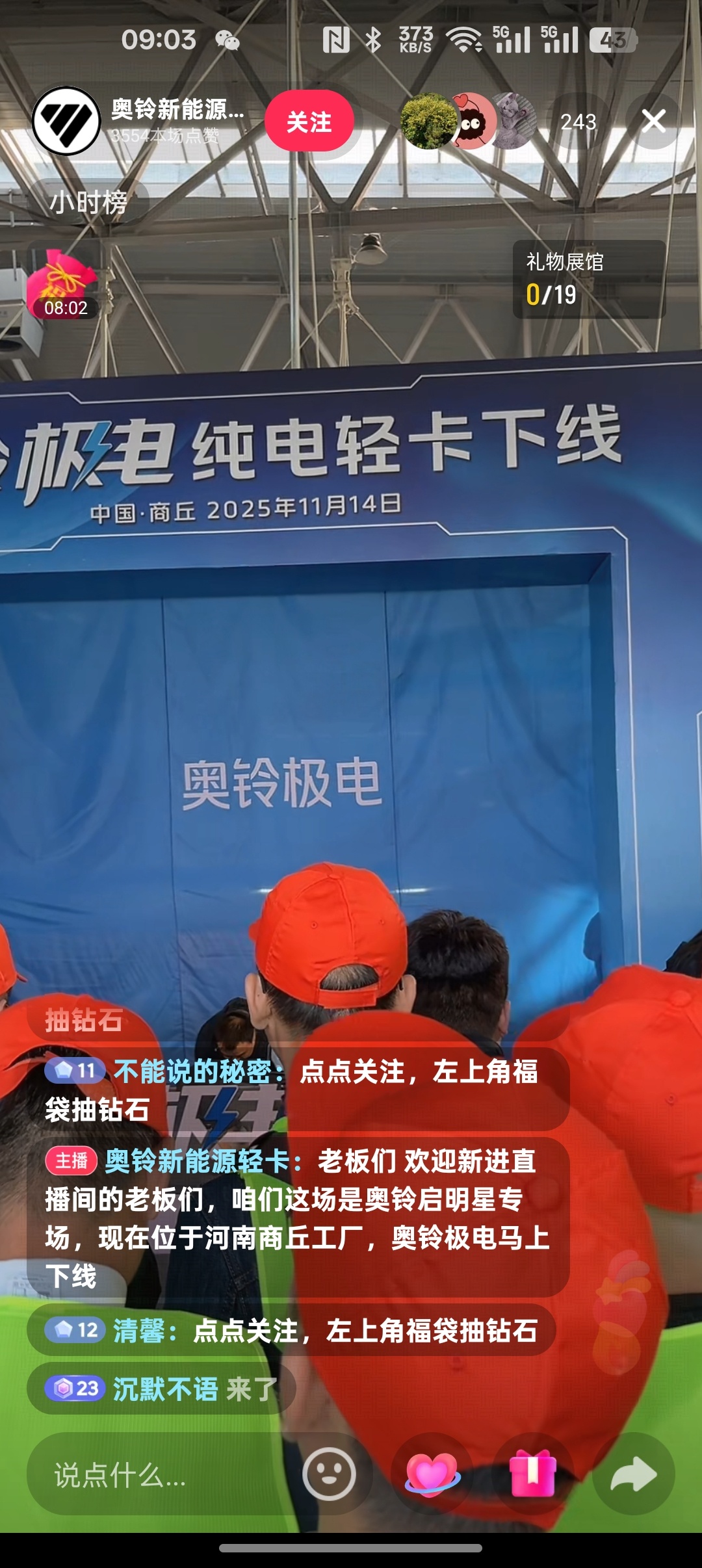 $福田汽车(SH600166)$ 启明星平台的福田奥铃极电轻卡正在下线