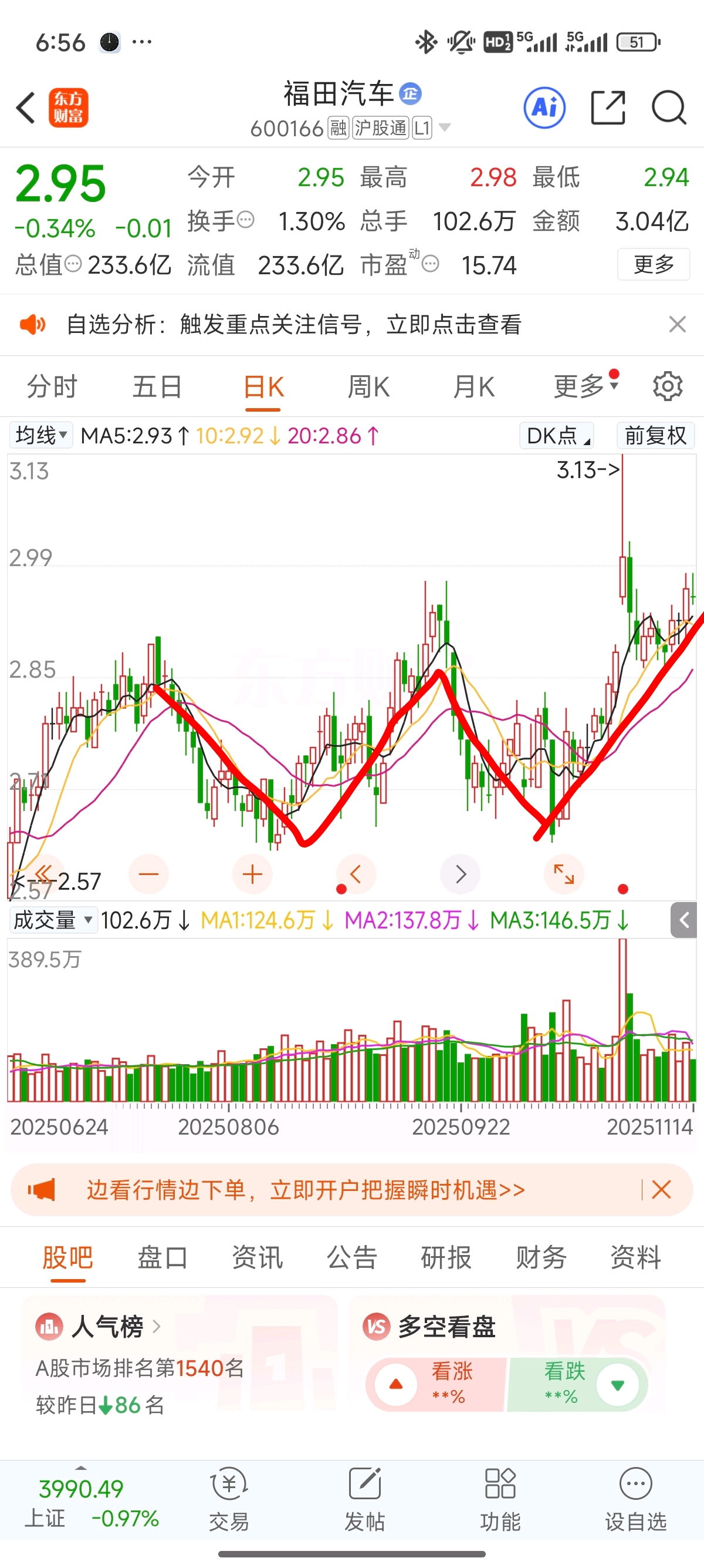 $福田汽车(SH600166)$ 靓仔给宝子们划根线
