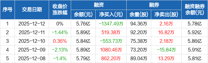 福田汽车:融资净偿还1347.49万元,融资余额5.76亿元(12-12)