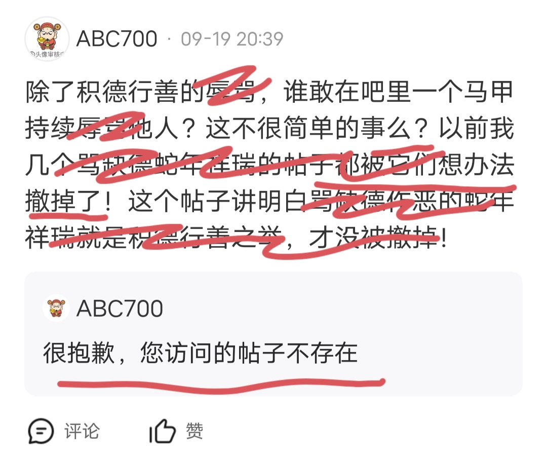 蛇年祥瑞它不断注销马甲、改马甲名字、注册新马甲,至少弄几十个不同地址马甲长年累月时时刻刻待在福田吧里活动,被揪出来证据后依然明着活动恶心这里对这里所有人没有一丝丝尊重,毫无人性可言!只有底层庄托会做这样主观恶意没人性的行为,它这个恶意行为一定会给庄家带去祸事不断!