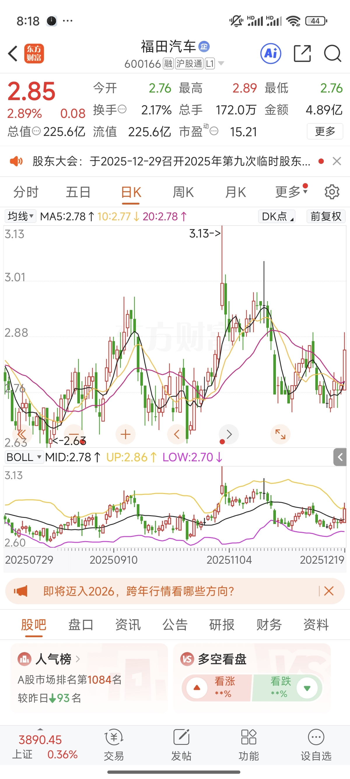 $福田汽车(SH600166)$ 福田这只股很好做的, boll上限卖,boll下限买,反复收割主力