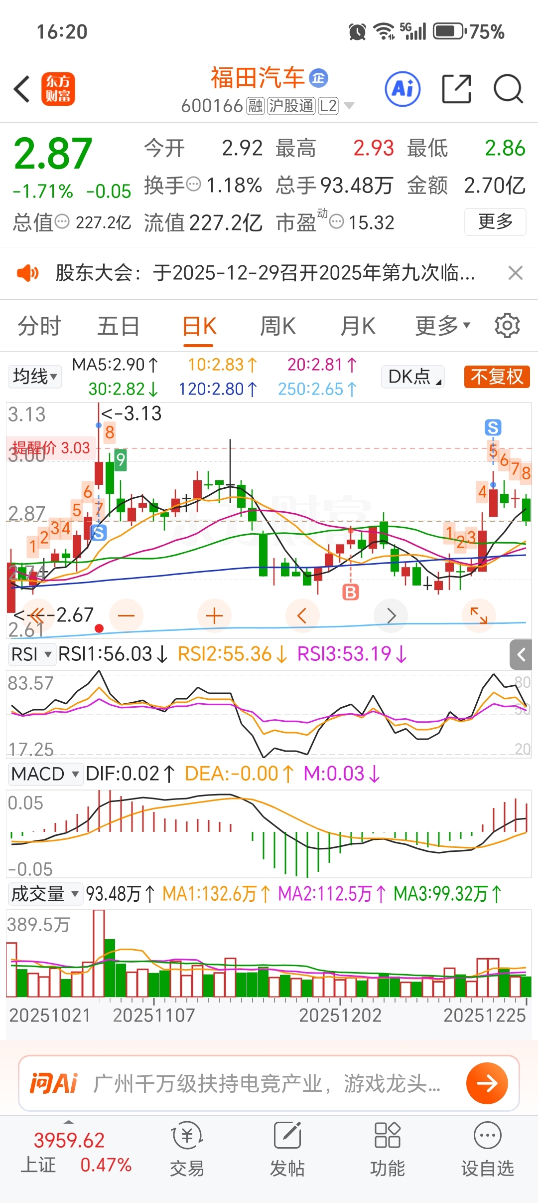 $福田汽车(SH600166)$ 对于小尖尖总是那么敏感