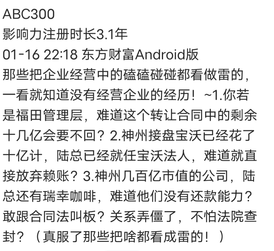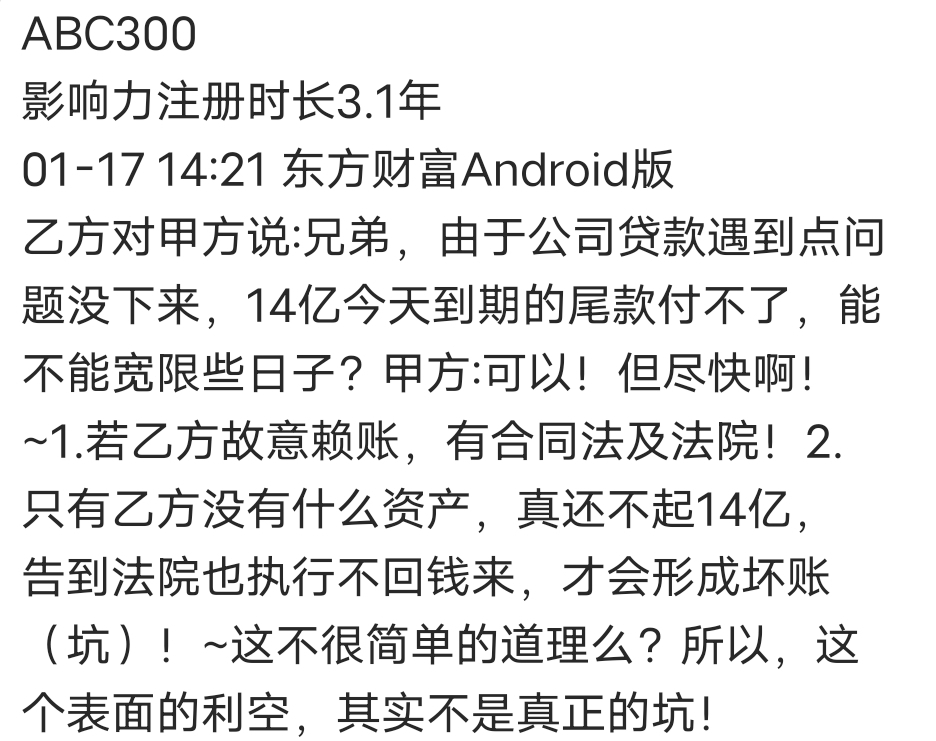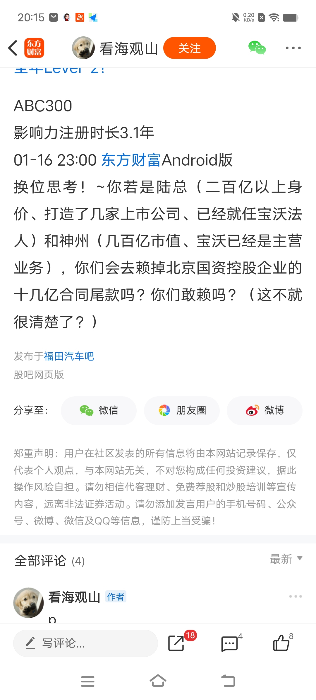 温馨提示: 1.根据《证券法》规定,禁止编造、传播虚假信息或者误导性信息,扰乱证券市场;2.用户在本社区发表的所有资料、言论等仅代表个人观点,与本网站立场无关,不对您构成任何投资建议。用户应基于自己的独立判断,自行决定证券投资并承担相应风险。《东方财富社区管理规定》