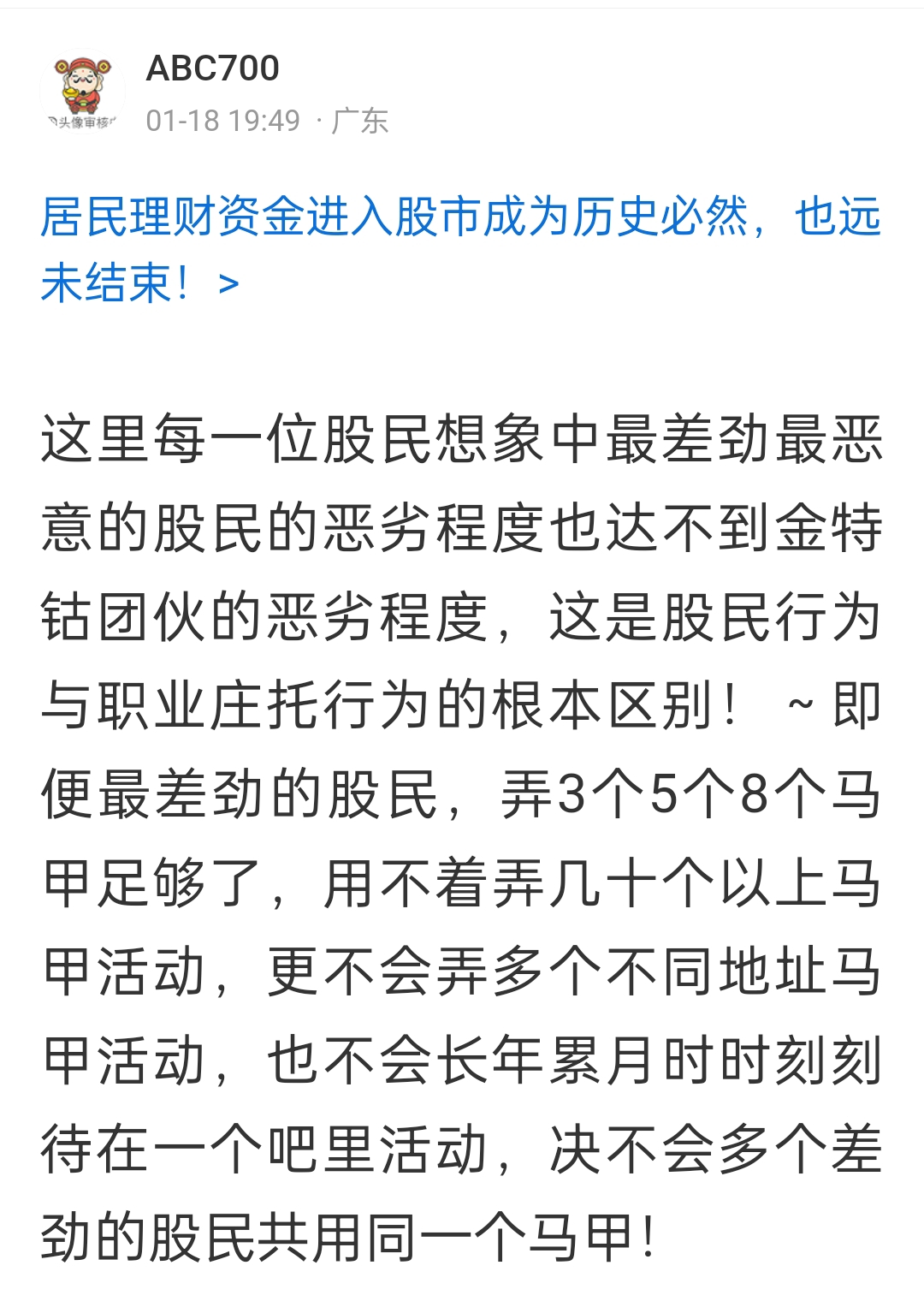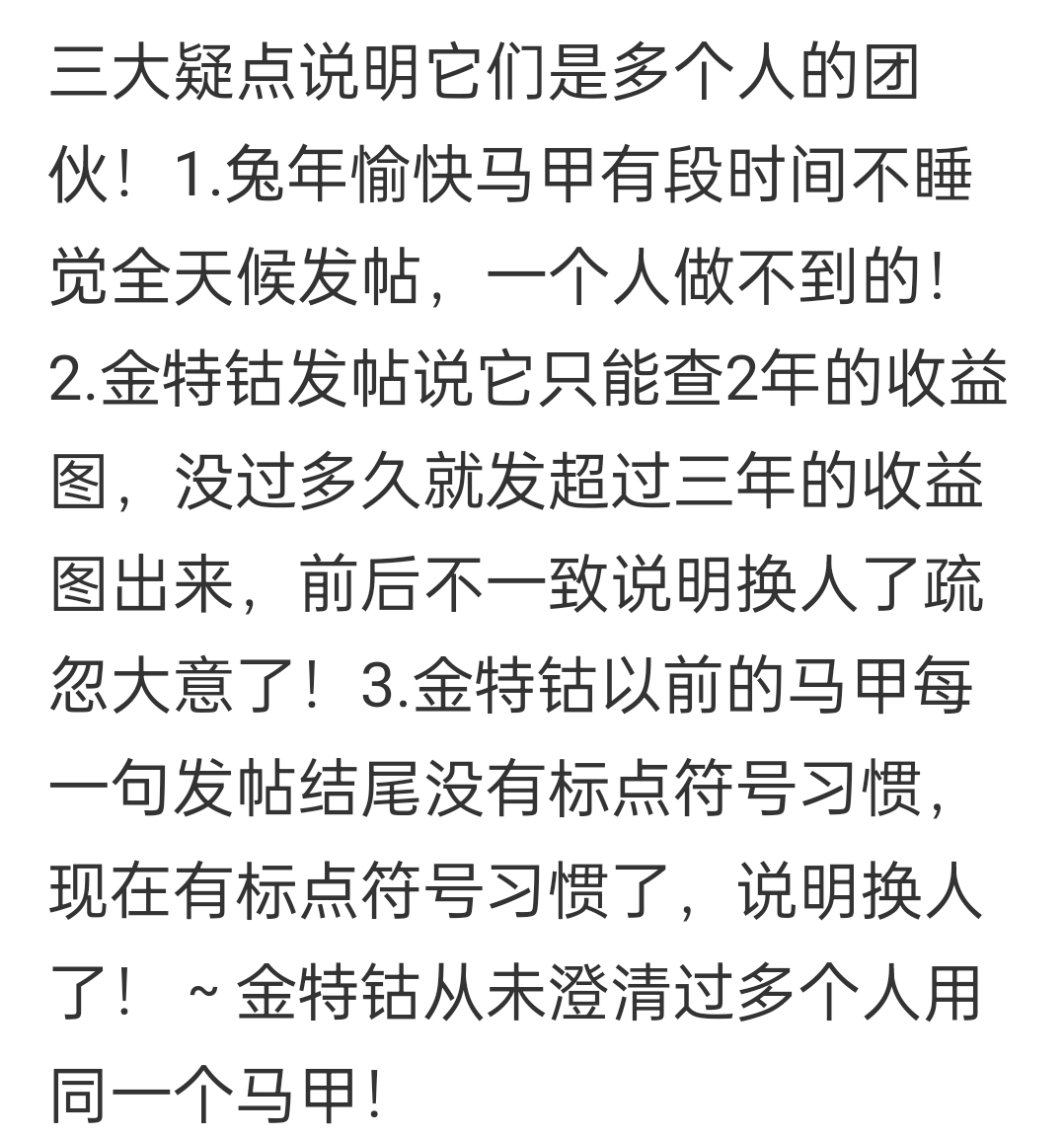 股民是不存在去换个人来用自己的马甲发帖的!只有职业庄托团伙才会共用同一个马甲发帖!