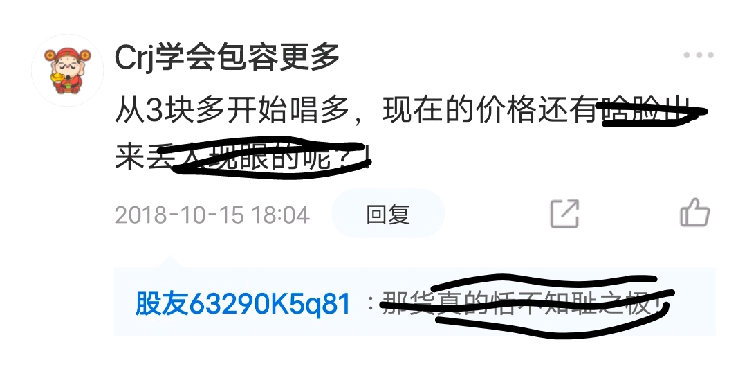 当年为了你内心的一已私利狂吹(妄图通过拉人推高股价让你获利),然而迎来却暴跌,坑了不知多少人!!!股价是靠人多就能推上去的吗?