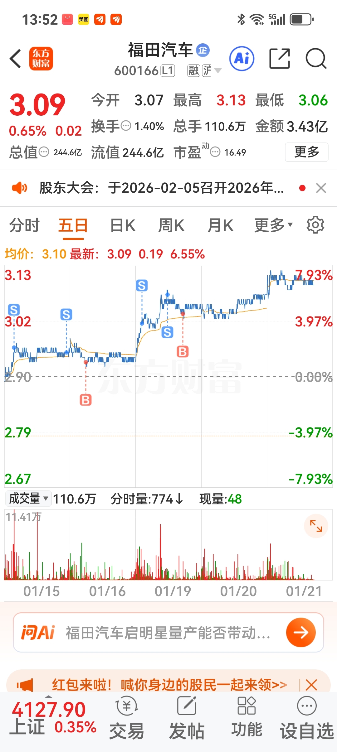 $福田汽车(SH600166)$ 我也不知道我是不是卖飞了。卖飞的半仓能不能在这一周内接回?