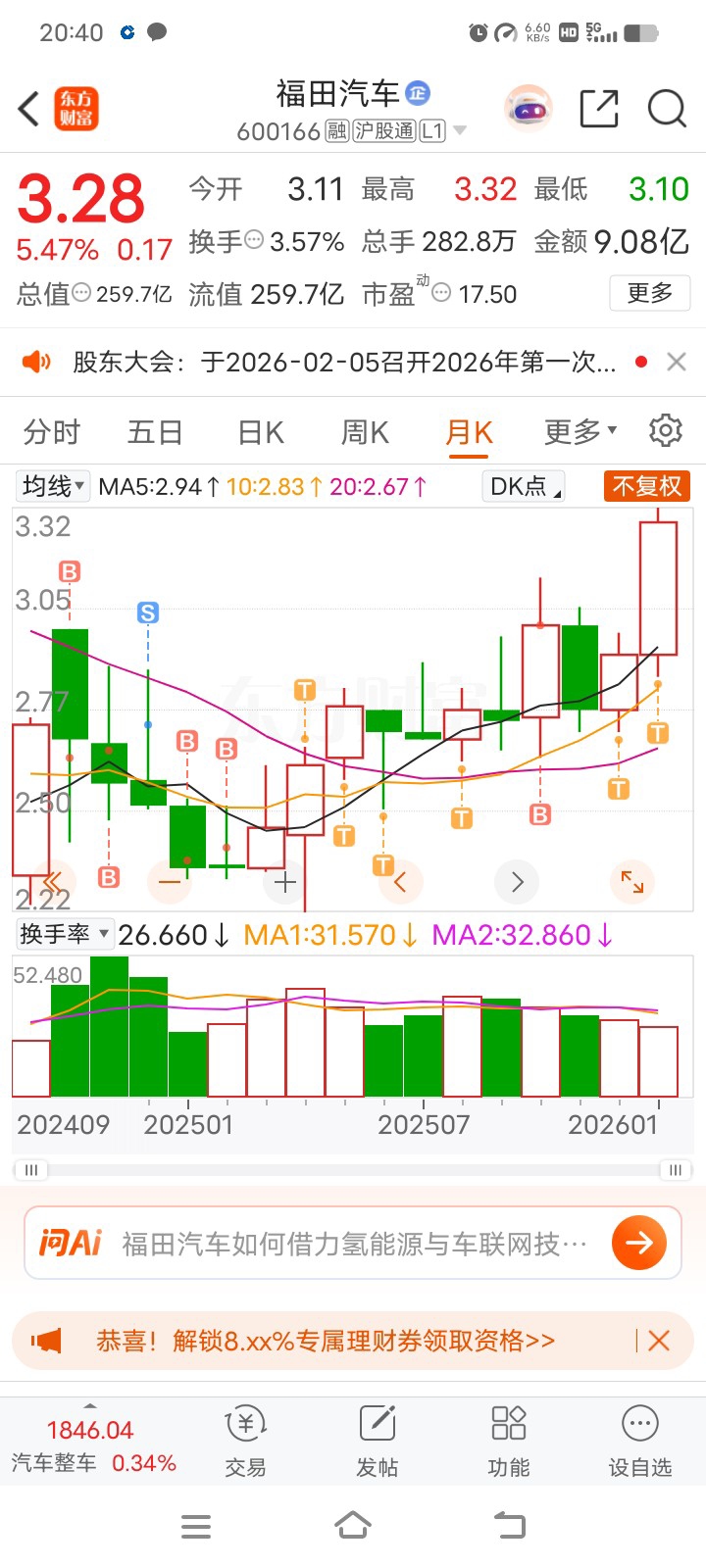 $福田汽车(SH600166)$ 跑什么跑,久不久干个T