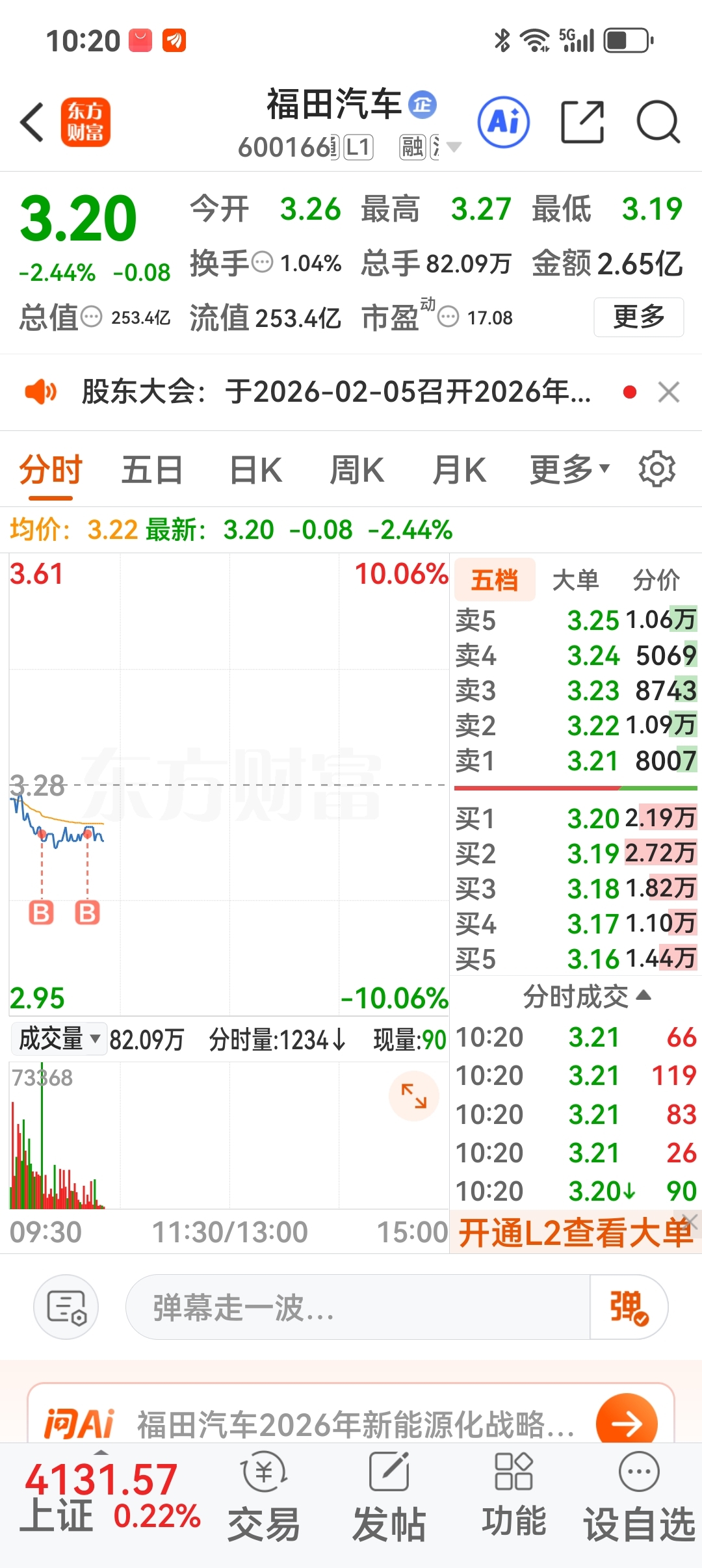 $福田汽车(SH600166)$ 看来昨天卖光是正确的,今天买回半仓了。