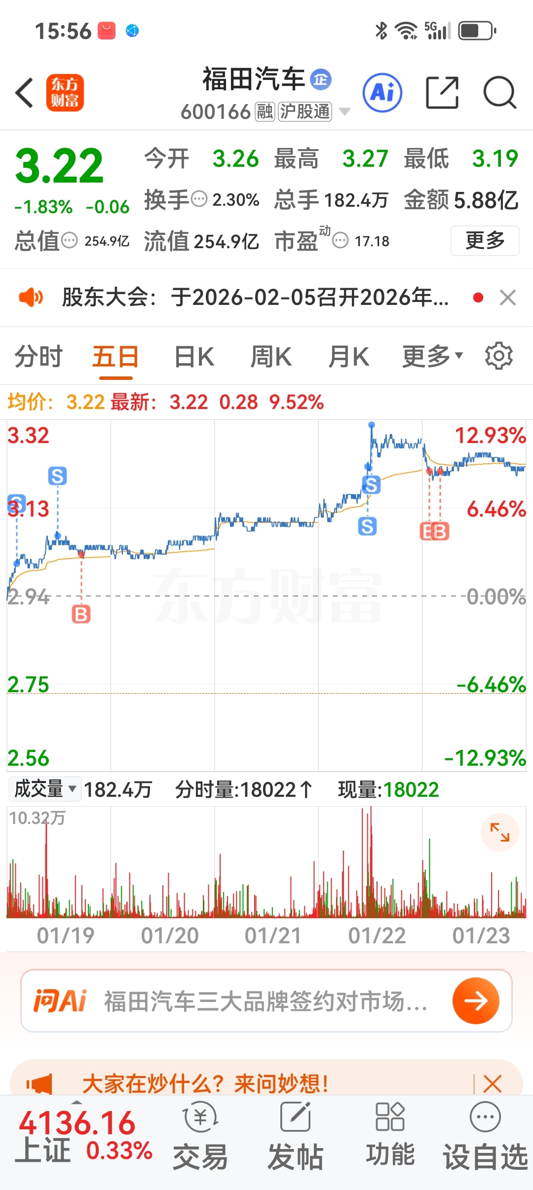 福田汽车永远适合高卖低买。这不我又买回来了。做t盈利三个。