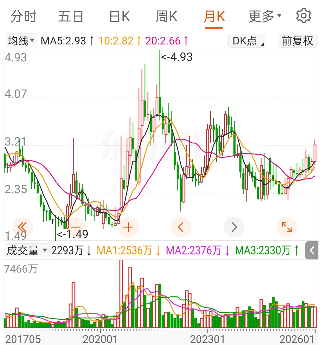 上一轮牛市,福田最低点只有一个:1.49元,最高点只有一个:4.93元!~这一轮牛市,最低点只有一个:2.02元,最高点也只有一个:决不会是3.32元,还早呢!