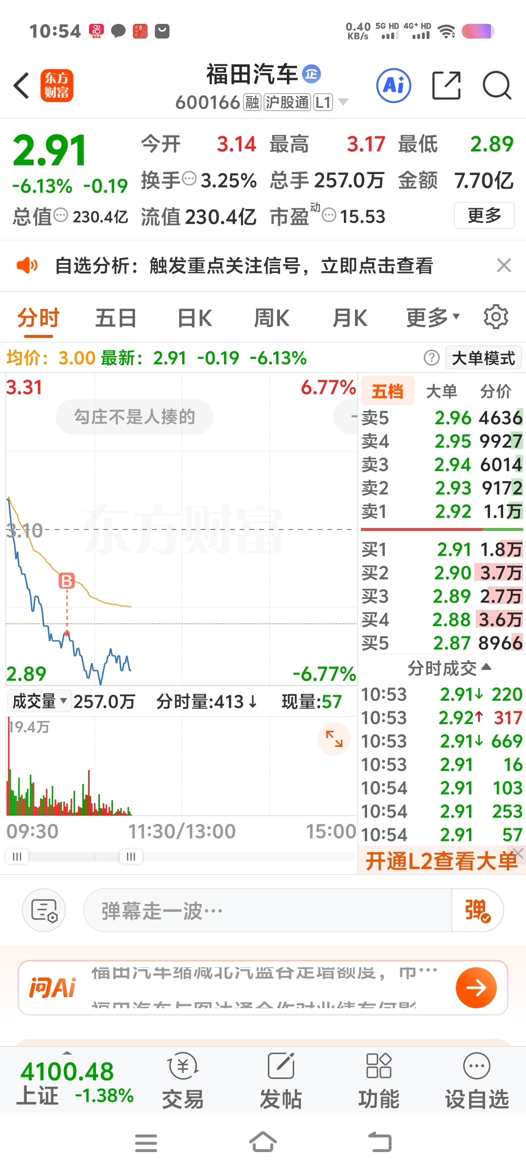 $福田汽车(SH600166)$ 老子一进来就这鸟样。