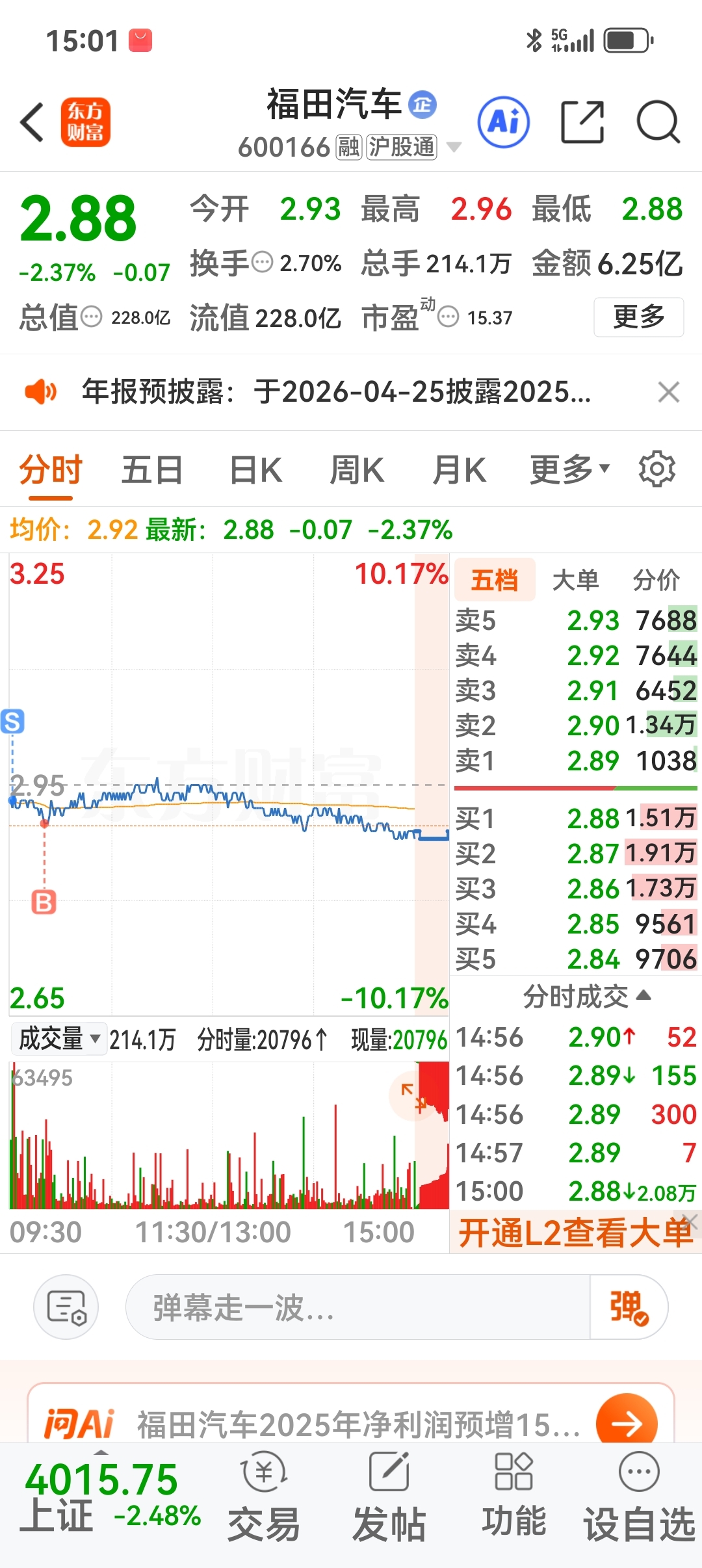$福田汽车(SH600166)$ 每天都可以做一次t。这感觉真是好极了。明天再跌再买。