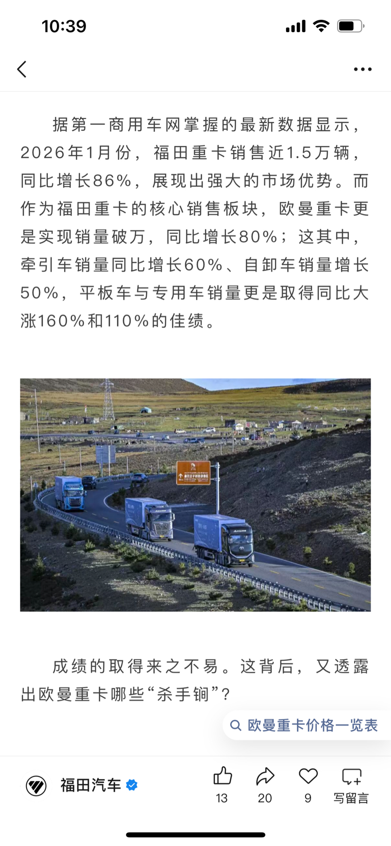 不是应该你也要涨吗?重汽都这么猛
