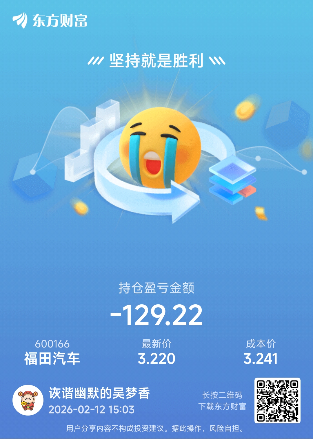 温馨提示: 1.根据《证券法》规定,禁止编造、传播虚假信息或者误导性信息,扰乱证券市场;2.用户在本社区发表的所有资料、言论等仅代表个人观点,与本网站立场无关,不对您构成任何投资建议。用户应基于自己的独立判断,自行决定证券投资并承担相应风险。《东方财富社区管理规定》