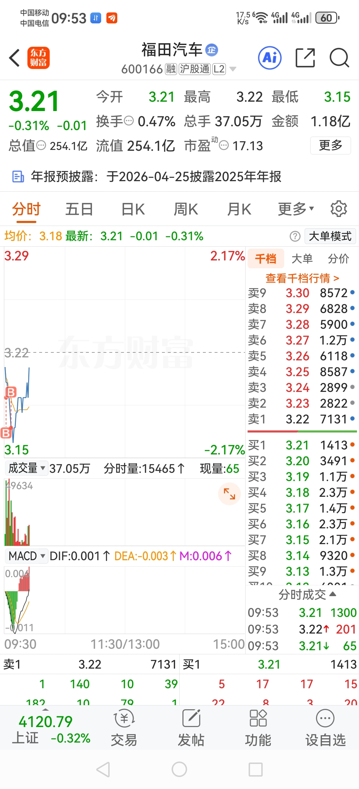 $福田汽车(SH600166)$ 又给我做t机会,福田真好