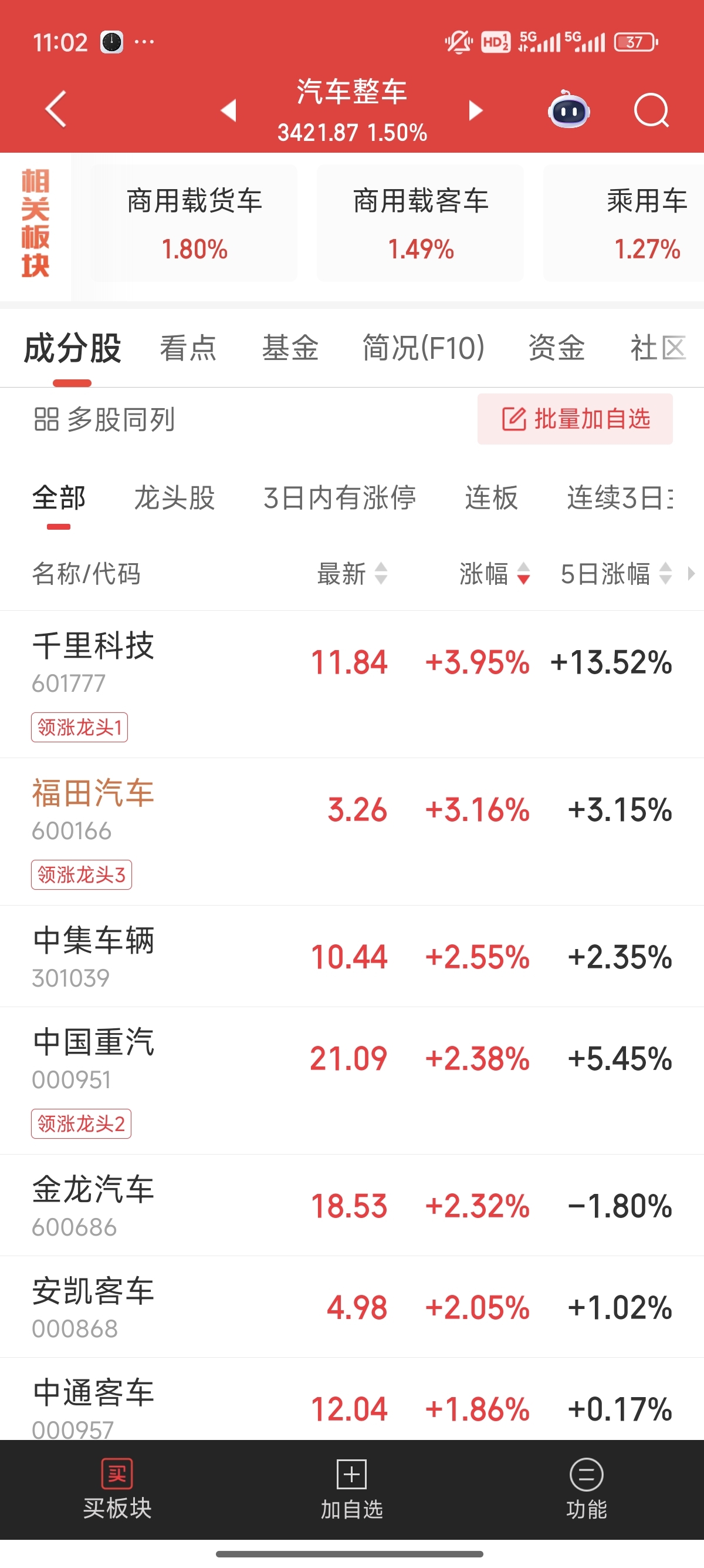 $福田汽车(SH600166)$ 领涨空头