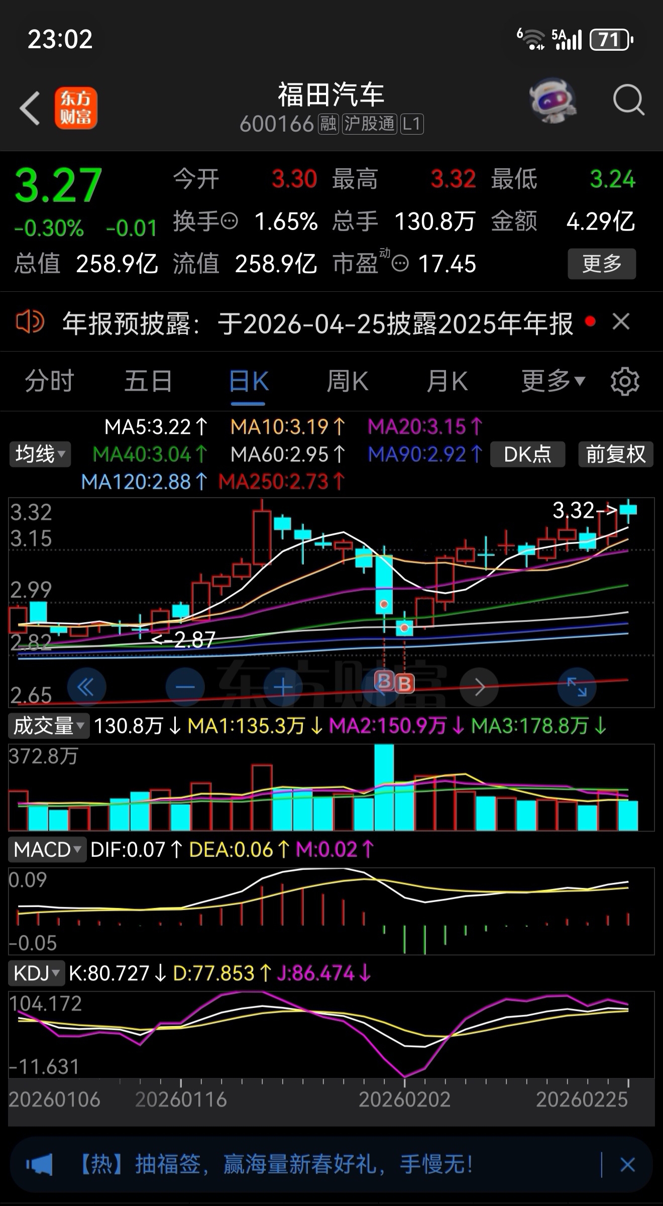 底仓已建好,坐等韭菜和主力给我抬轿子。计划下月抛售提一辆福田小汽车。