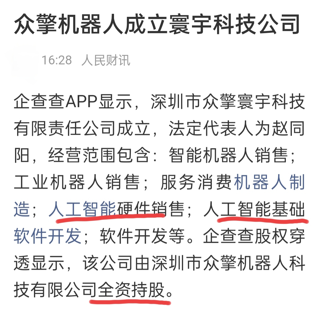 凤凰新闻:众擎机器人成立寰宇科技公司,联美控股10.3%!