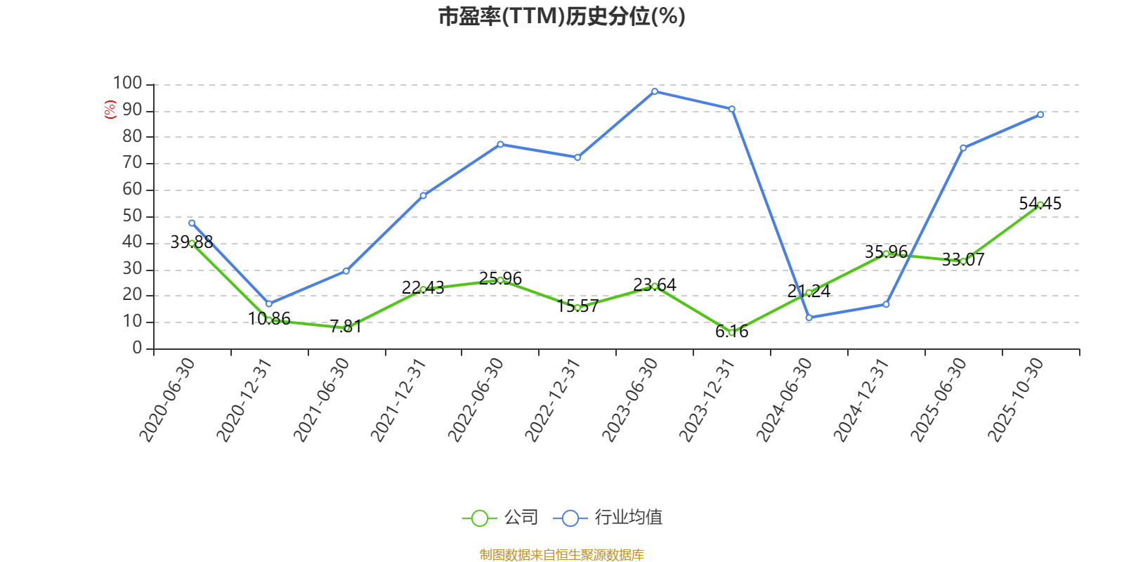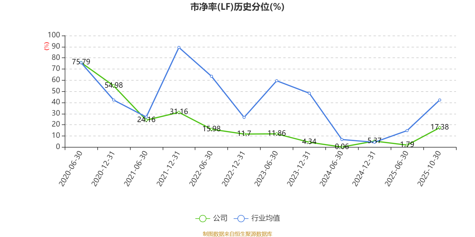 市盈率、市净率为负时,不显示当期分位数,会导致折线图中断。