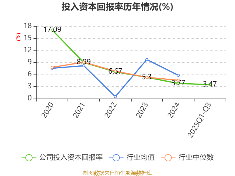 盈利能力方面, 2025年前三季度公司加权平均净资产收益率为5.05%,同比上升0.47个百分点。公司2025年前三季度投入资本回报率为3.47%,较上年同期上升0.48个百分点。