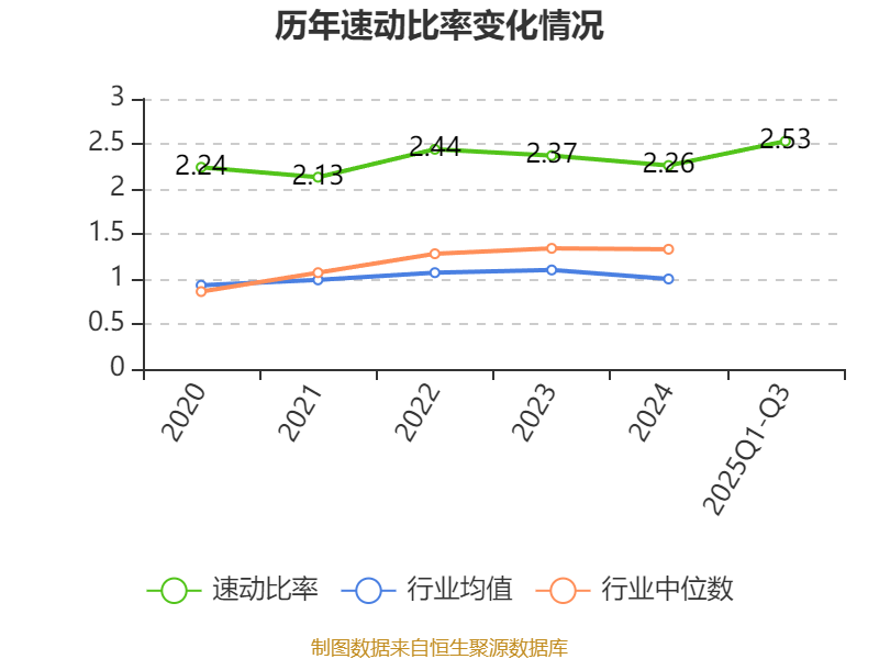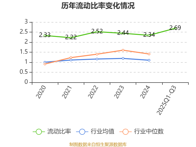 2025年前三季度,公司流动比率为2.69,速动比率为2.53。