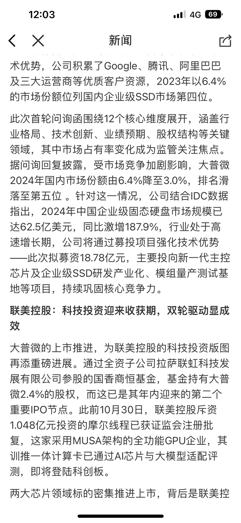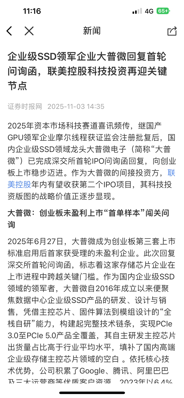 企业级SSD领军企业大普微回复首轮问询函,联美控股科技投资再迎关键节点