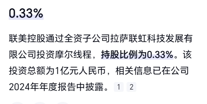 摩尔线程保守估值2000亿,联美控股收益6.6亿!