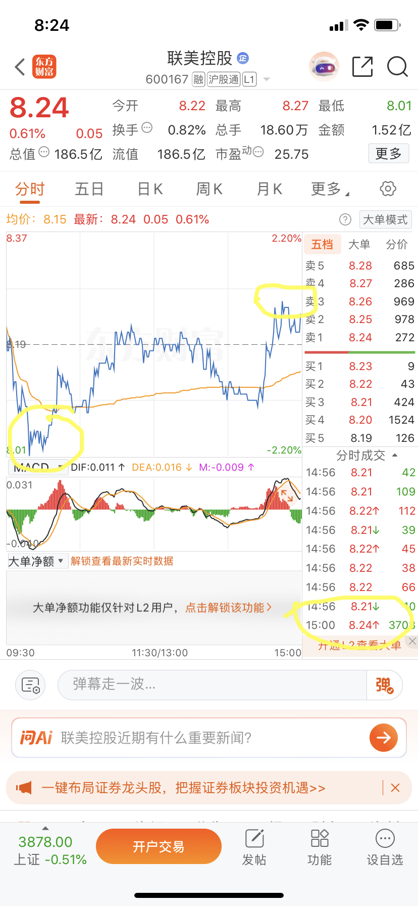 早上8块零几分买,尾盘8块2毛以上卖,然后再往下打出低点,今天跌破8块都很正常了