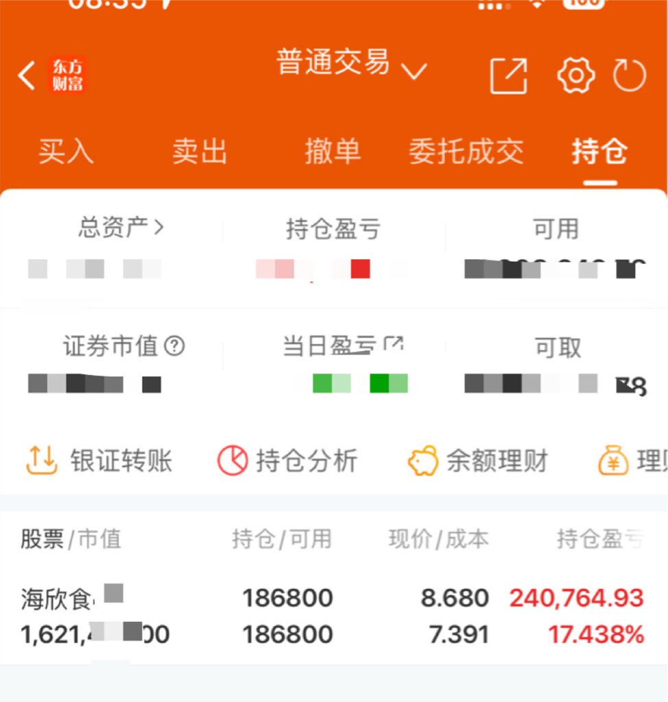 目前持仓:海欣食品若早盘不能快速走强的话那就先落袋咯