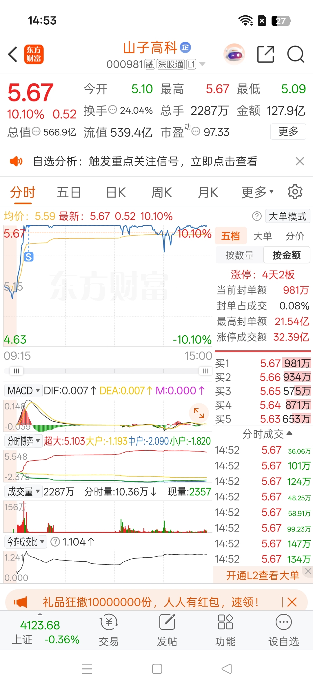 看看山子成交量,再看看你,差的太多了。说有板就板三颗牙也啃不开。