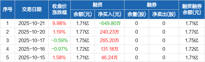 武汉控股:融资净偿还649.8万元,融资余额1.71亿元(10-21)