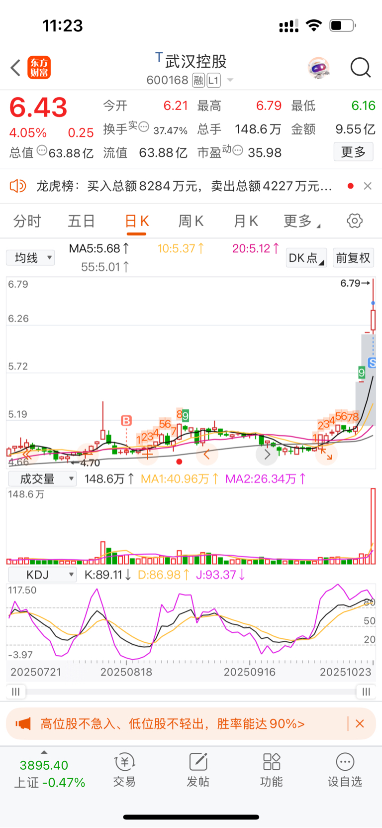 $武汉控股(SH600168)$ 全清了,明天接着板