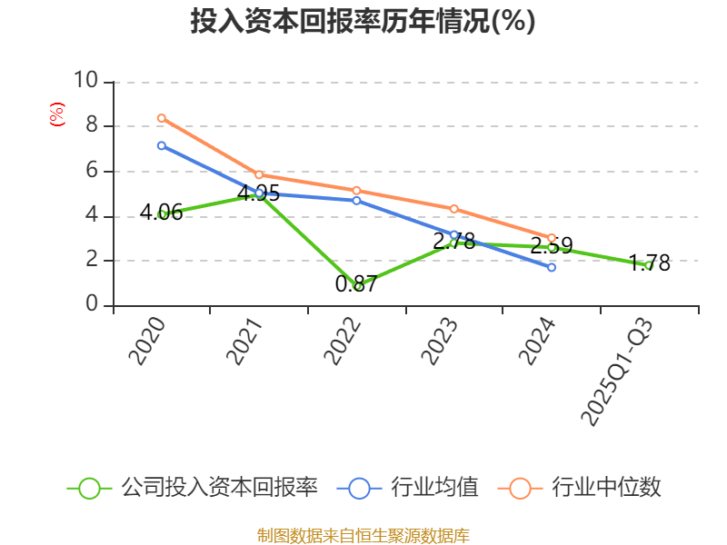 盈利能力方面, 2025年前三季度公司加权平均净资产收益率为1.55%,同比上升0.17个百分点。公司2025年前三季度投入资本回报率为1.78%,较上年同期下降0.43个百分点。