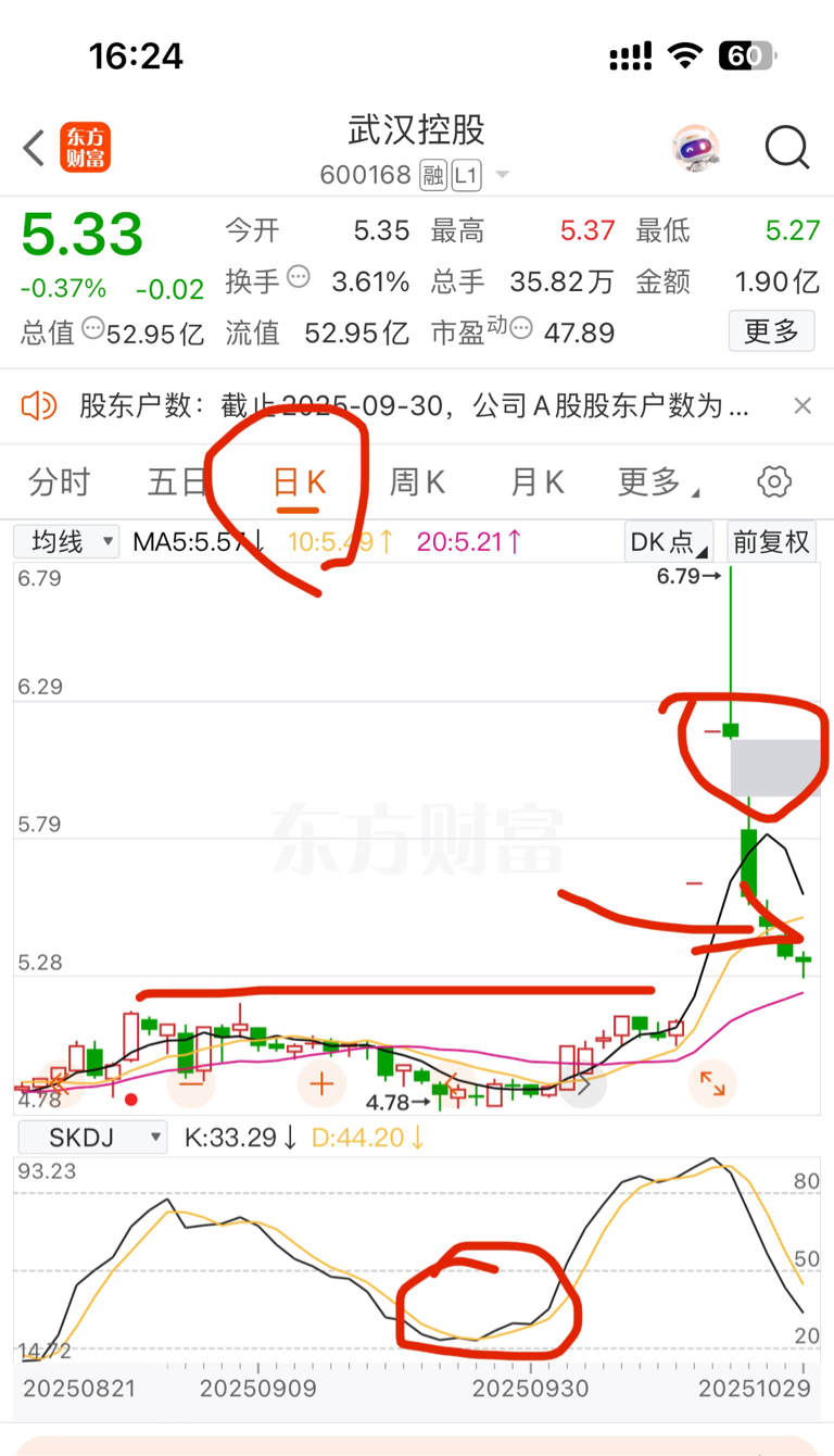 $武汉控股(SH600168)$ 底部船型底,上面像鸭头。只要再放量,必将上新高啊。